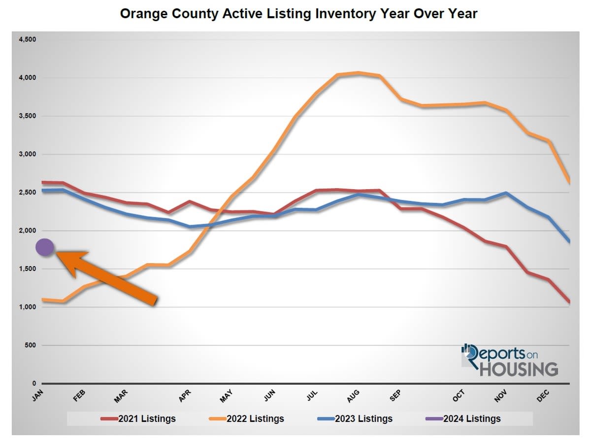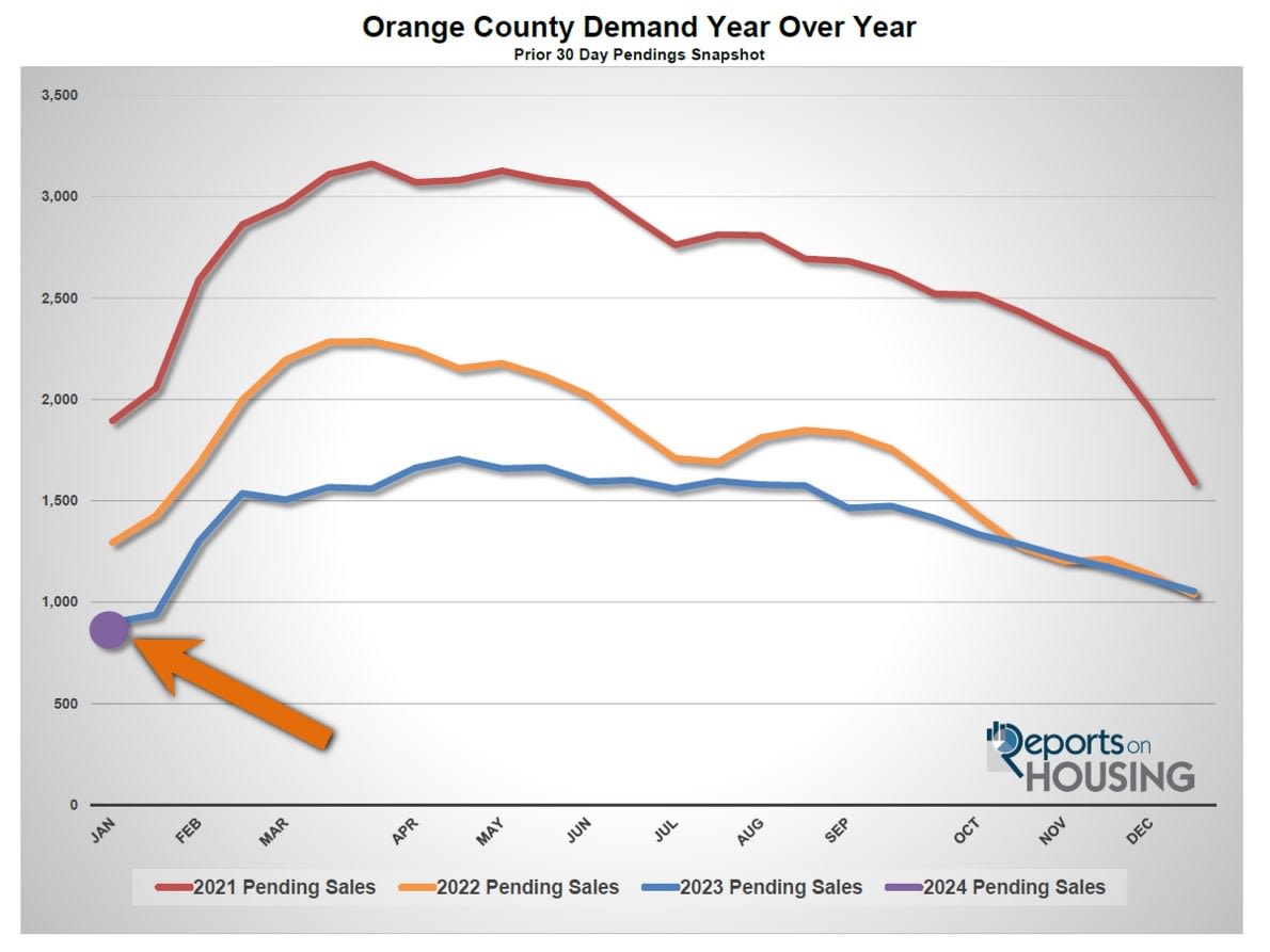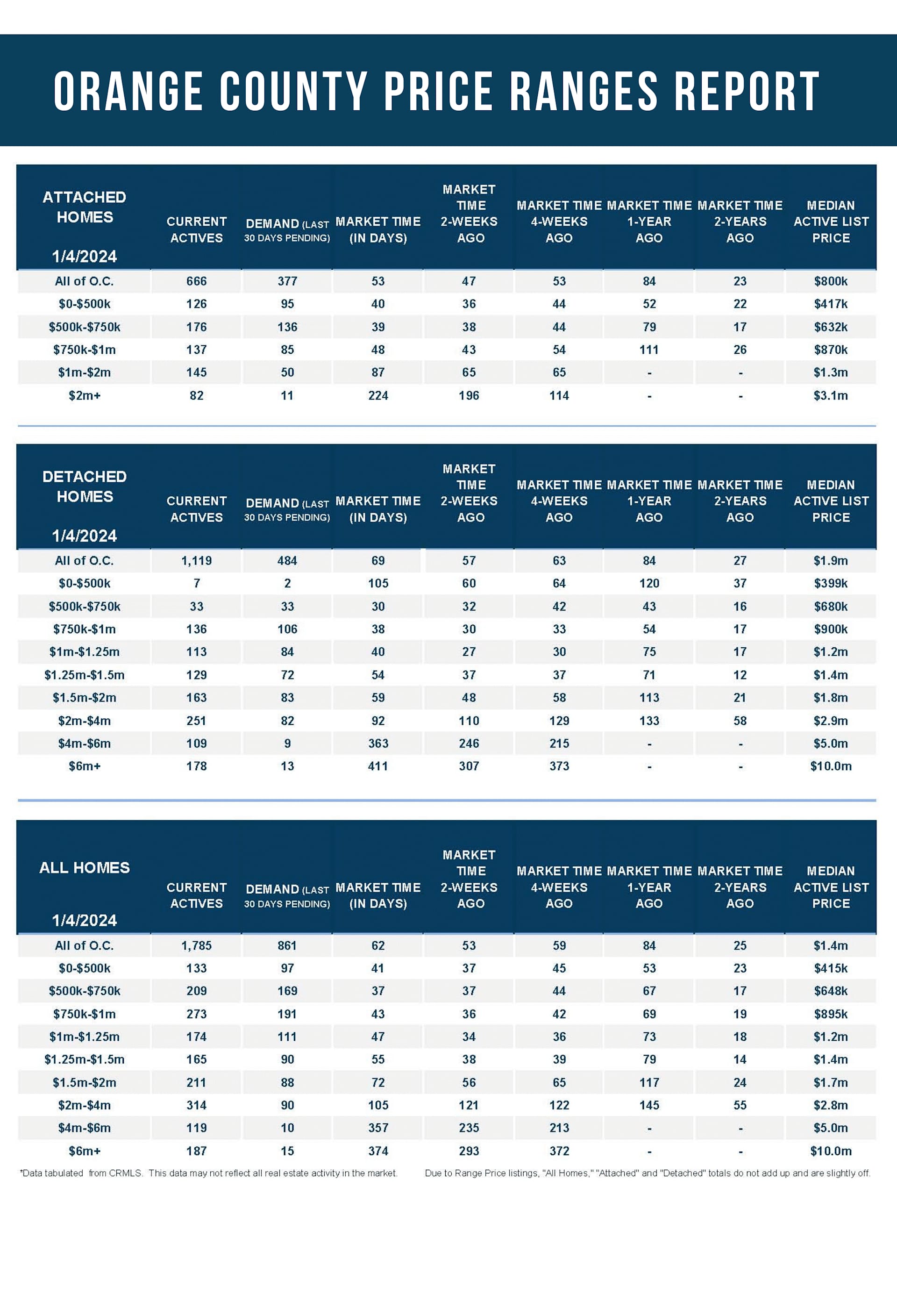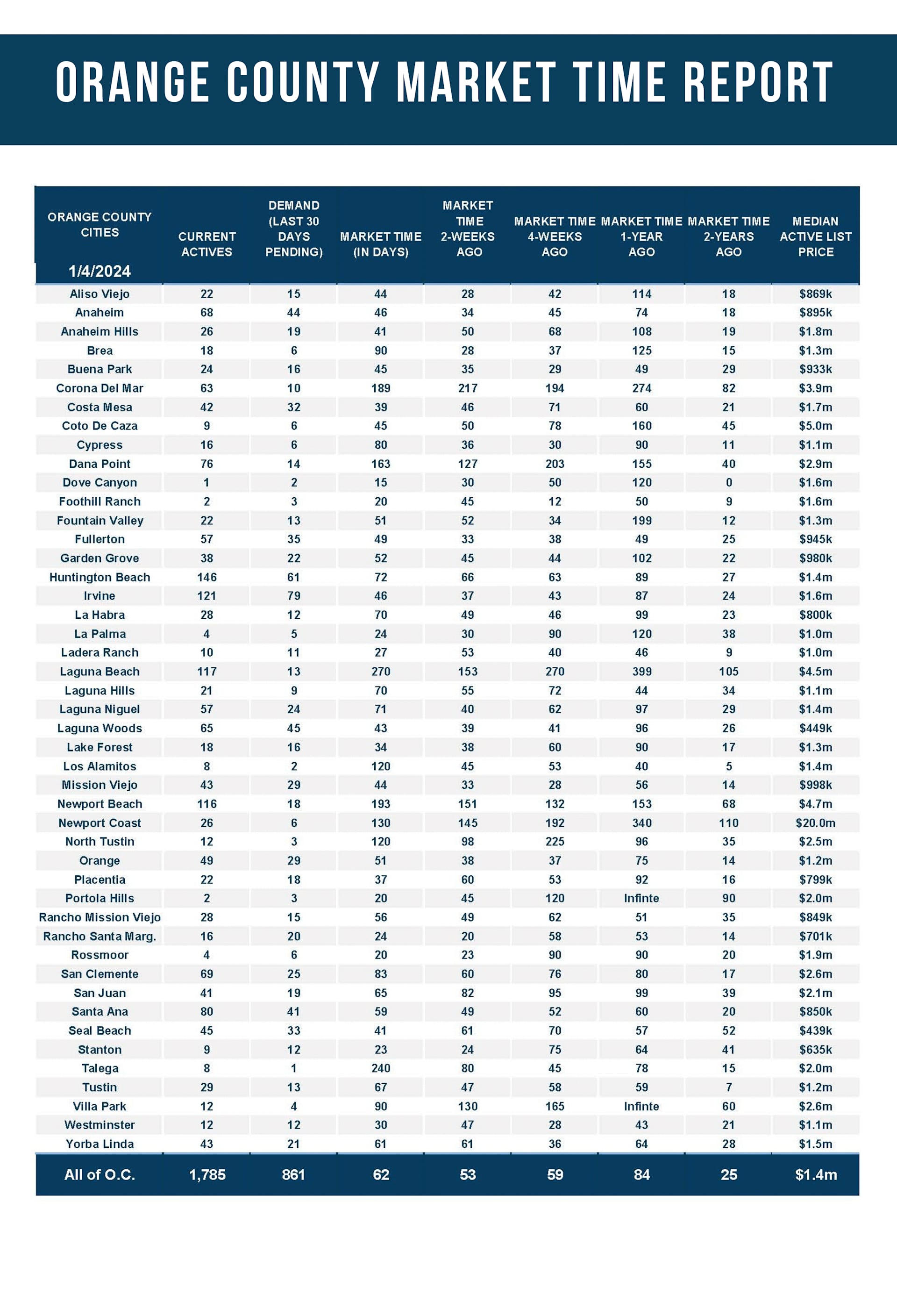 That is precisely what buyers are facing at the start of 2024. The Orange County housing shelves are half empty. It is tough being a buyer looking for a home today with higher mortgage rates and very few options to purchase. Demand is muted due to affordability constraints and fewer FOR-SALE signs. Still, the inventory crisis eclipses today’s diminished demand, resulting in a market that already feels hot at the start of January.