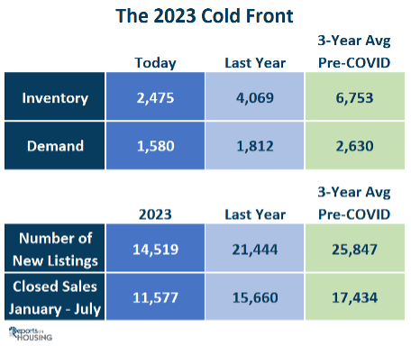 The housing market has experienced a similar cold front where it seems shrouded in a thick fog that will not clear. The higher mortgage rate environment has impacted many real estate statistics and resulted in a very cool summer. The active inventory, demand, and closed sales pale compared to when housing felt “normal” before COVID.