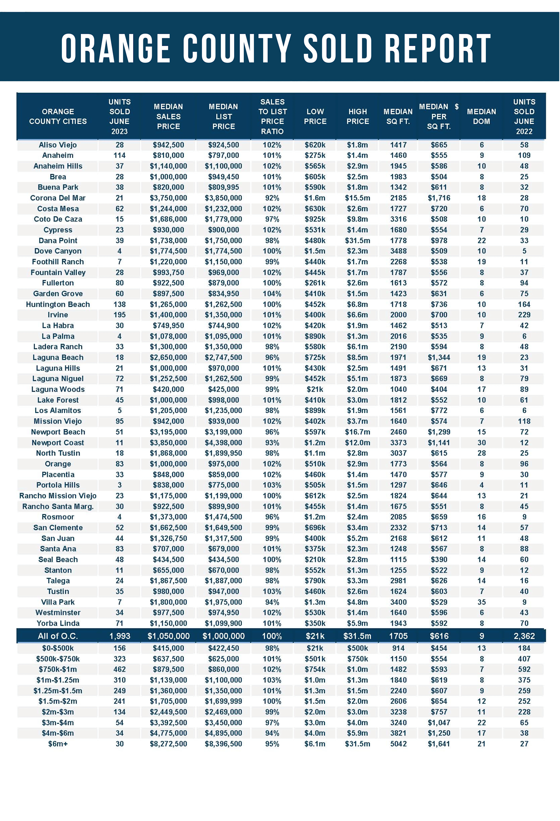 Low demand has led to the lowest monthly closed sales since tracking began in 2004. Through July, there have been only 11,577 closed sales, down 26% compared to last year and 34% compared to the 3-year pre-COVID average of 17,434 closed sales. In terms of closed units, housing is experiencing a recession. Nearly anyone that works within the real estate industry, from REALTORS® to mortgage lenders to inspectors, has felt the impact of completing fewer sales. Yet, in terms of values, the homeowner is doing quite well. According to Freddie Mac’s Home Price Index, the Los Angeles/Orange County metro dropped 7% from its all-time peak in May 2022 through December 2022. Since bottoming in December, home values have risen 7% through June and appear poised to continue to climb through 2023 due to a scarcity of homes for sale.