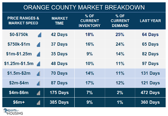 In the past couple of weeks, the luxury inventory of homes priced above $2 million decreased from 810 to 807 homes, down three, nearly unchanged. Luxury demand increased by seven pending sales, up 4%, and now sits at 192. With inventory almost unchanged and demand rising slightly, the Expected Market Time for luxury homes priced above $2 million decreased from 131 to 126 days. Yet, at 126 days, the luxury market is much more sluggish than the lower ranges, and luxury sellers must carefully approach the housing market.