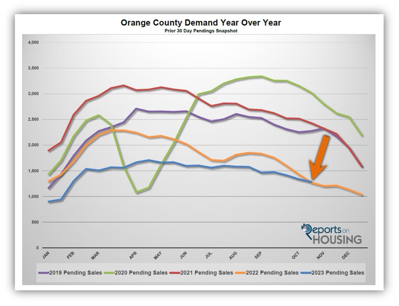 Last year, demand was at 1,270, 1% lower than today, or 14 fewer. The 3-year average before COVID (2017 to 2019) was 2,180 pending sales, 70% more than today, or an additional 896.