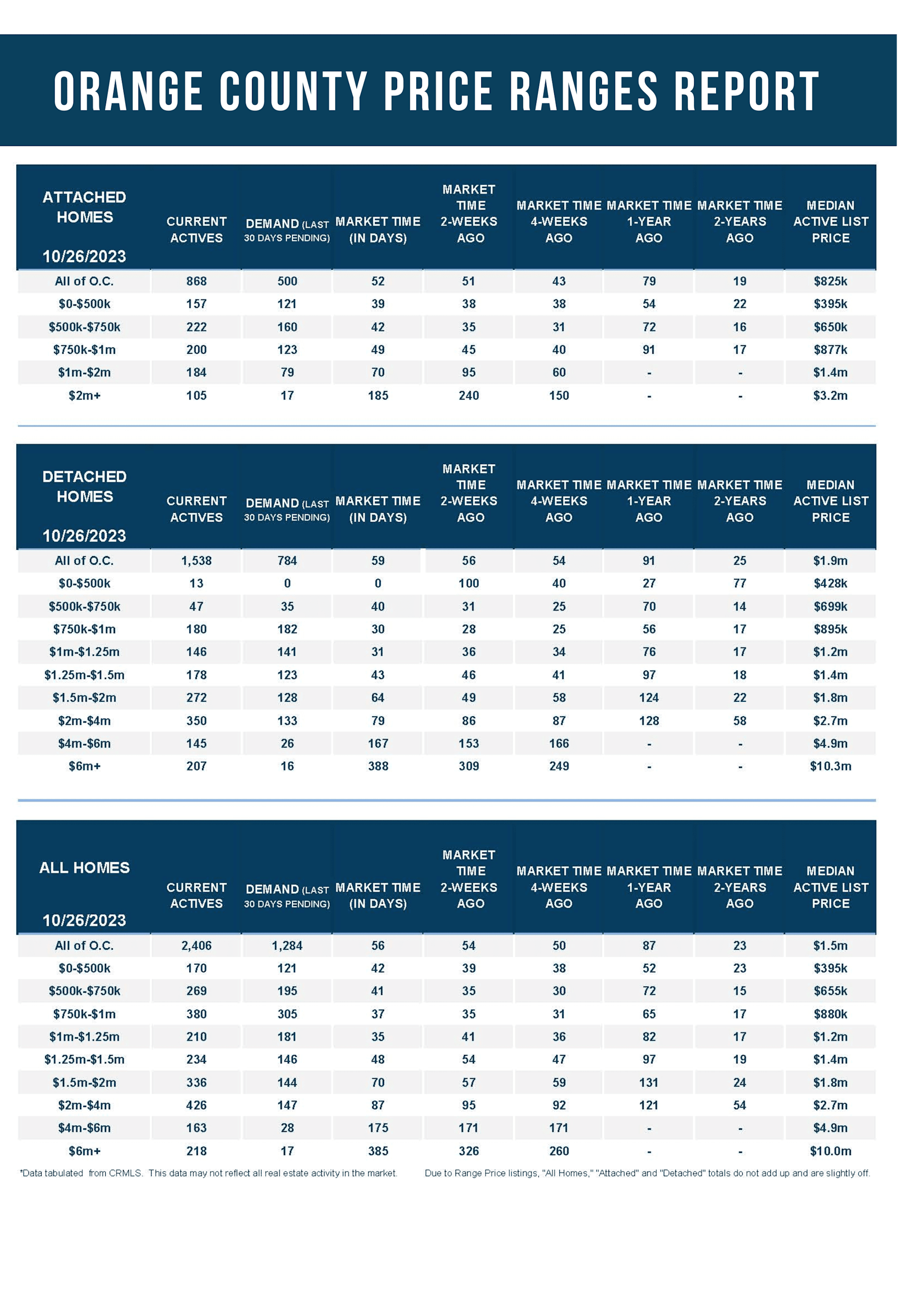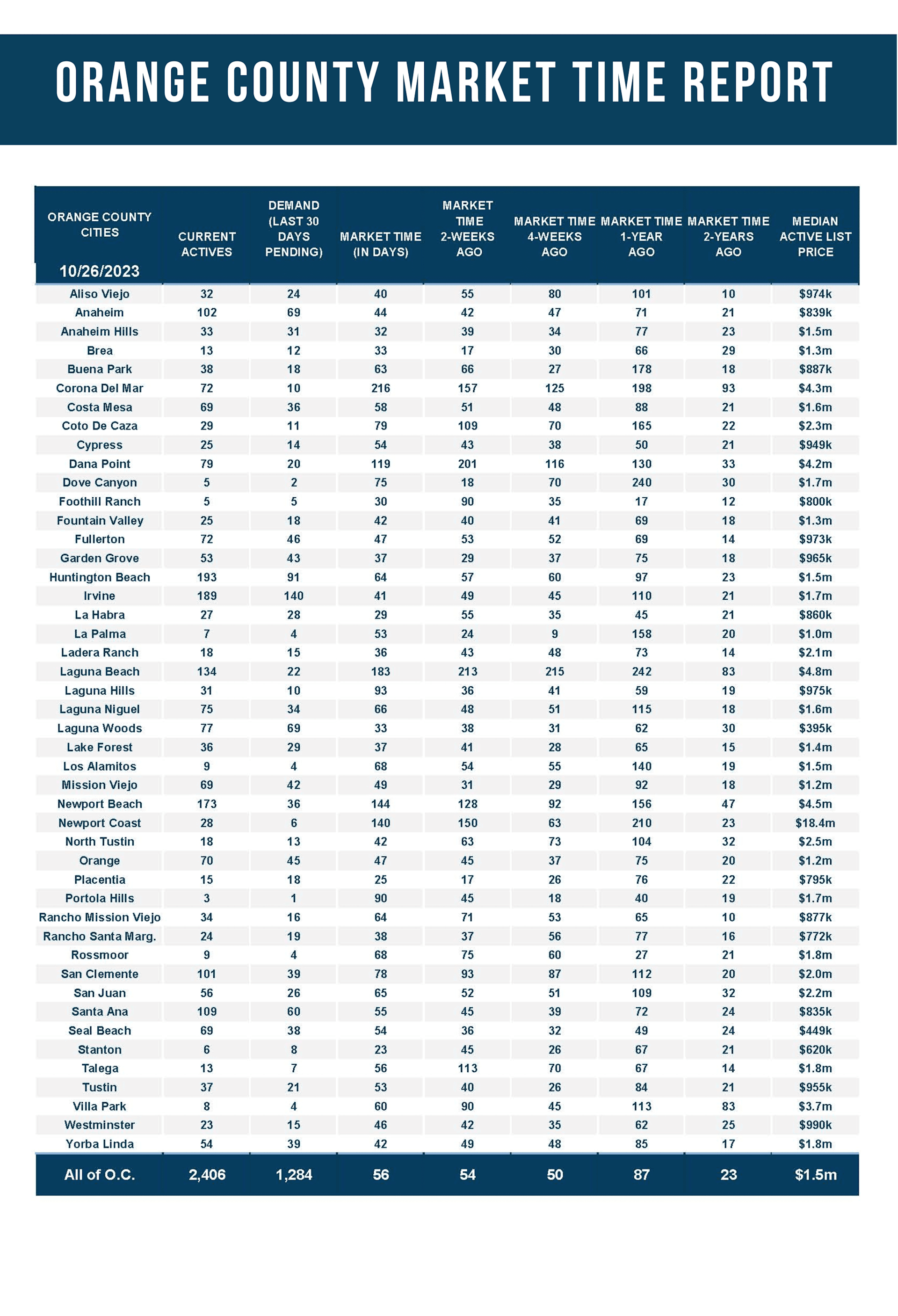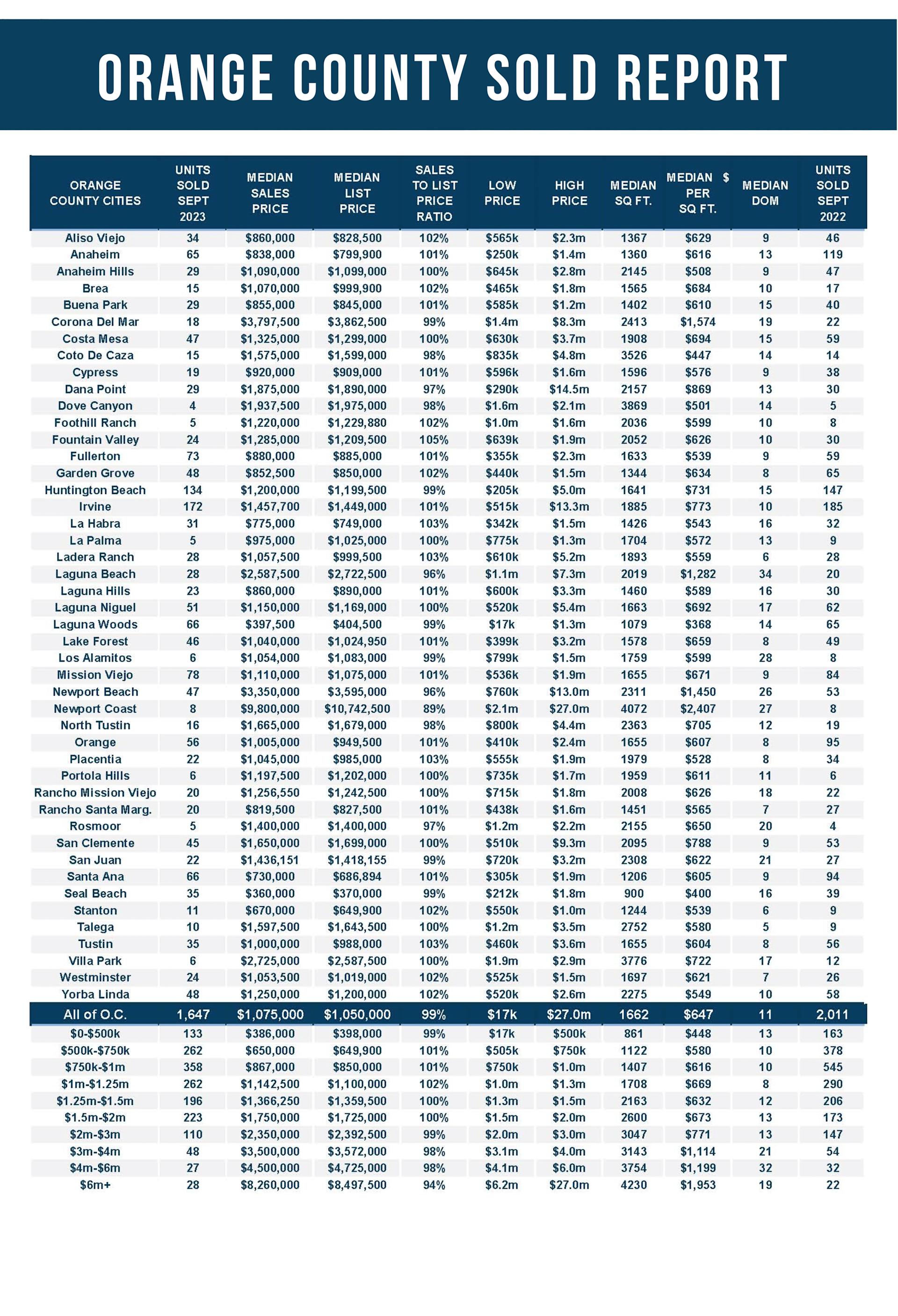 The sales price to last list price ratio is very telling. This refers to the final list price before becoming a pending sale. These are averages, meaning there are exceptions, but the overall trend is stunning. In Orange County, 80% of all closed sales in September did not reduce the asking price. The sales price to last list price ratio for these homes was 100.2%, meaning, on average, a home sold for a fraction higher than the asking price. A house listed at $1 million sold for $1,002,000, $2,000 above the asking price. The median days on the market before becoming a pending sale was only 8, indicating that accurate pricing means way less time on the market.