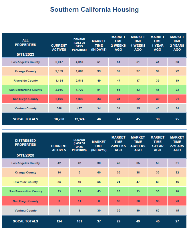 Demand, a snapshot of the number of new escrows over the prior month, decreased from 1,706 to 1,660 in the past couple of weeks, down 46 pending sales, or 3%. Today’s level is the lowest for mid-May since 2020, during the initial COVID lockdown, when it climbed to 1,622. It is crucial to understand that today’s demand readings are not only impacted by higher mortgage rates and unaffordability but also substantially affected by significantly fewer sellers coming on the market. Demand may be low, but the buyers in the house-hunting game are competing against each other. The market is very hot despite lower demand and fewer sales.