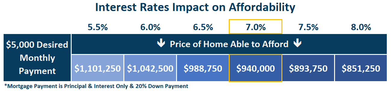 The change in rates has cut into home affordability. On February 1st, mortgage rates dropped to nearly 6.5%. Buyers desirous of a $5,000 per month principal and interest payment with 20% down, at 6.5%, would be looking at a $988,750 home. As mortgage rates migrated back up to 7%, those same buyers are now looking at a $940,000 home, nearly $50,000 less of a home.